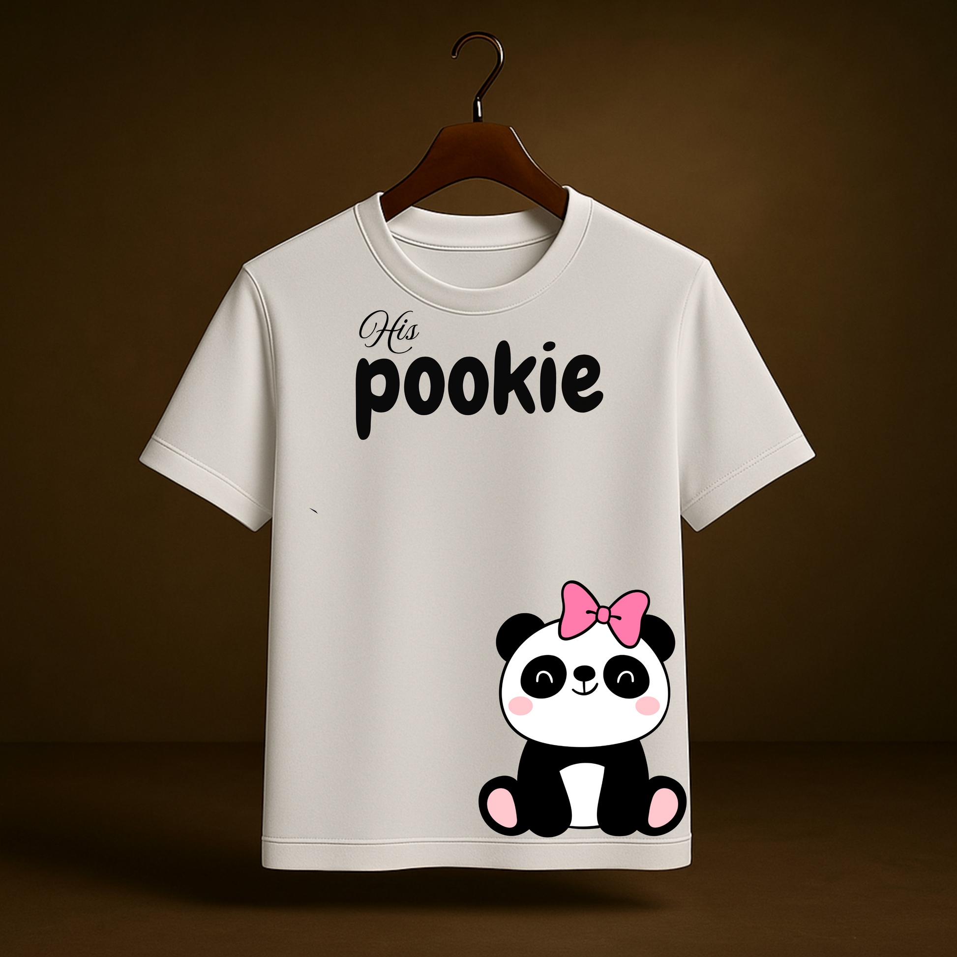 Her Pookie Panda – White Regular Fit T-Shirt (180 GSM Cotton | Couple Edition)